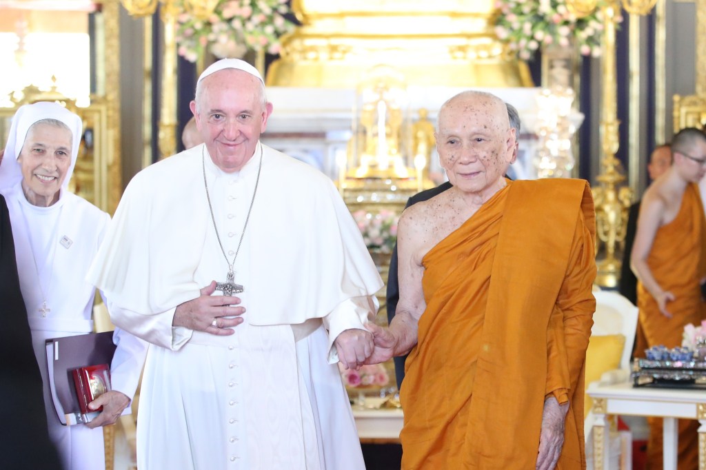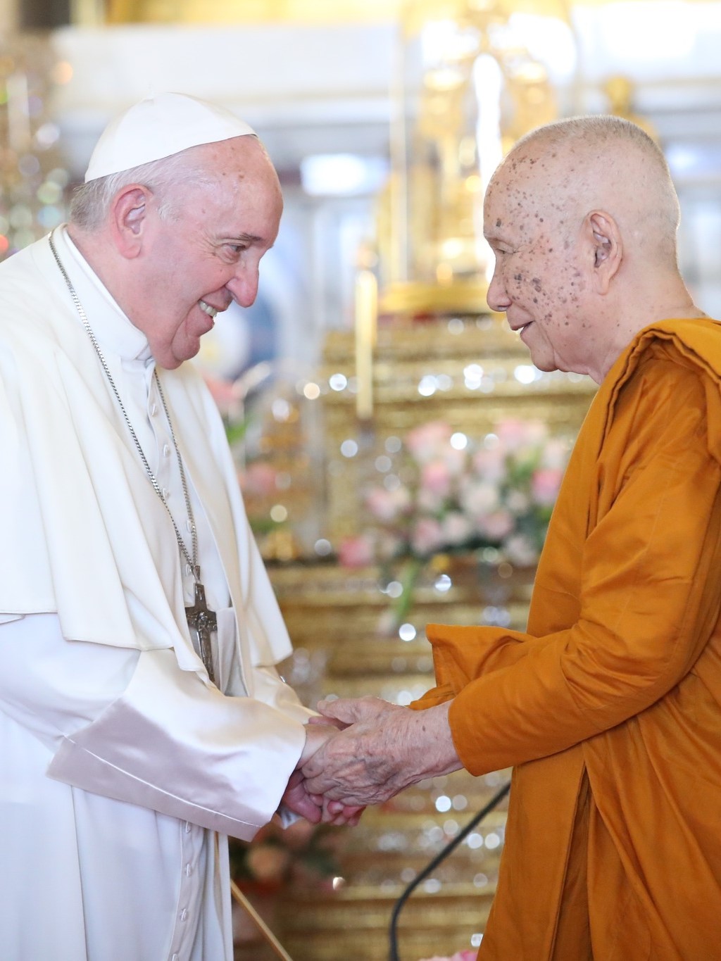 Images of HH Somdet Phra Ariyavongsagatayana, the Supreme Patriarch of Thailand receiving HH Pope Francis at Wat Ratchabophit, Bangkok, on Thursday 21 November 2019