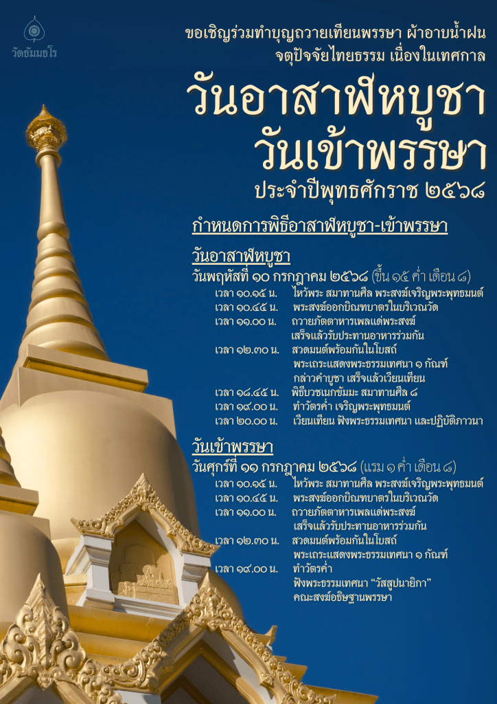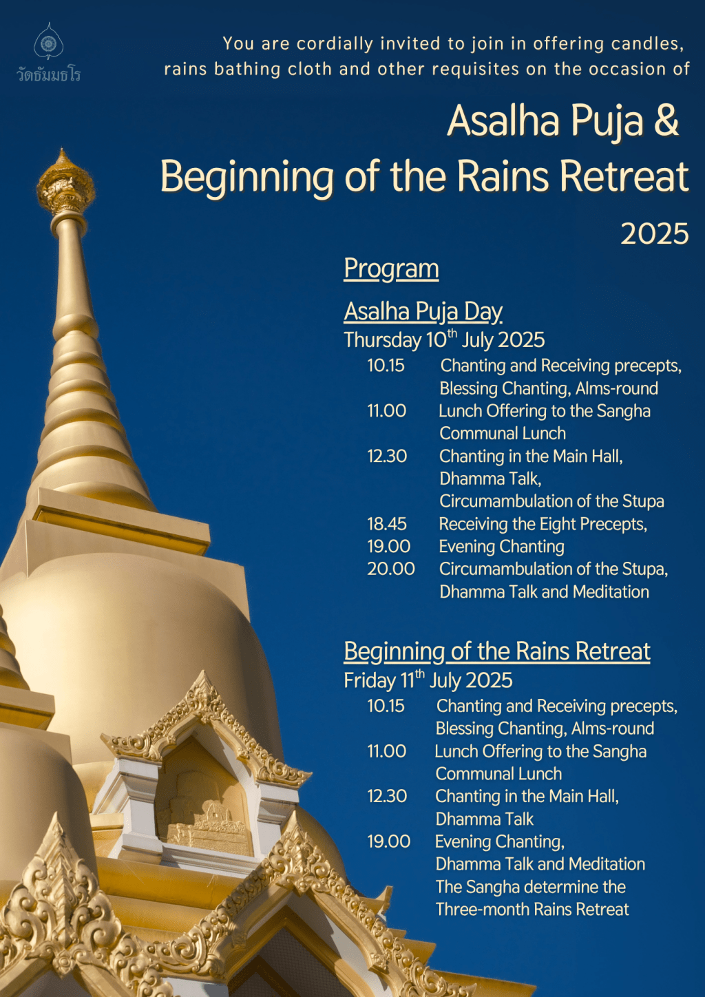 The following day marks the beginning of the Monsoon or Rain Season in South and South-East Asia, which is a time for monks to restrict their travel for 3 months in order to learn and practice the Dhamma more vigorously.